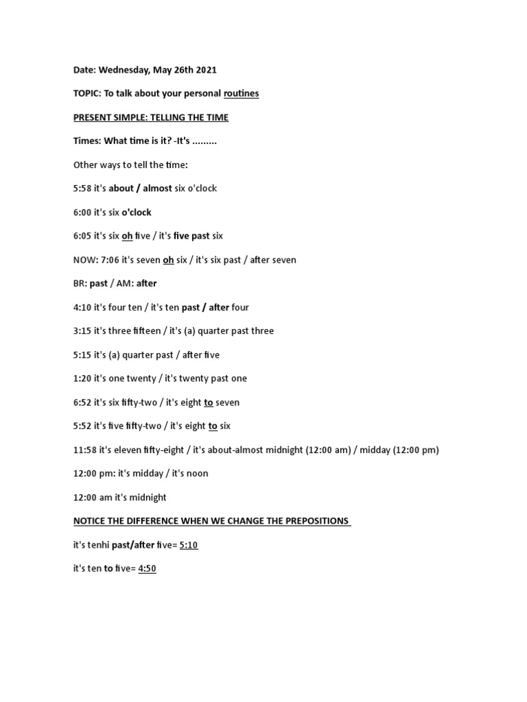 Week 4 Present Simple Wednesday May 26th Pdf Lunch Meal
