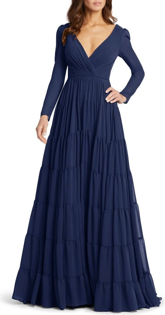 Ieena For Mac Duggal Size 14 Tiered Ruffle Chiffon Gown Black 398 Ebay